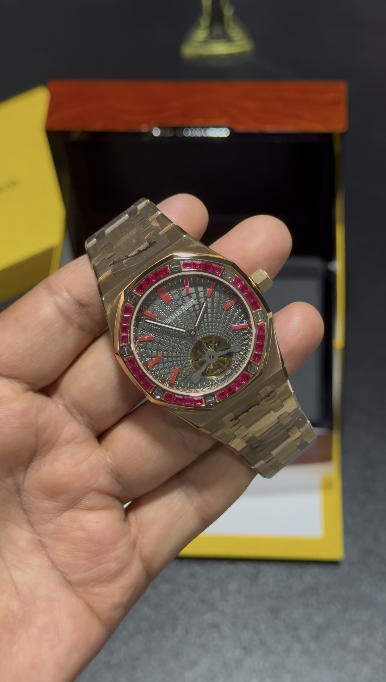Be the first to review “AP Tourbillon – Grey Dial – Stone Bezel – Rosegold Bracelet”