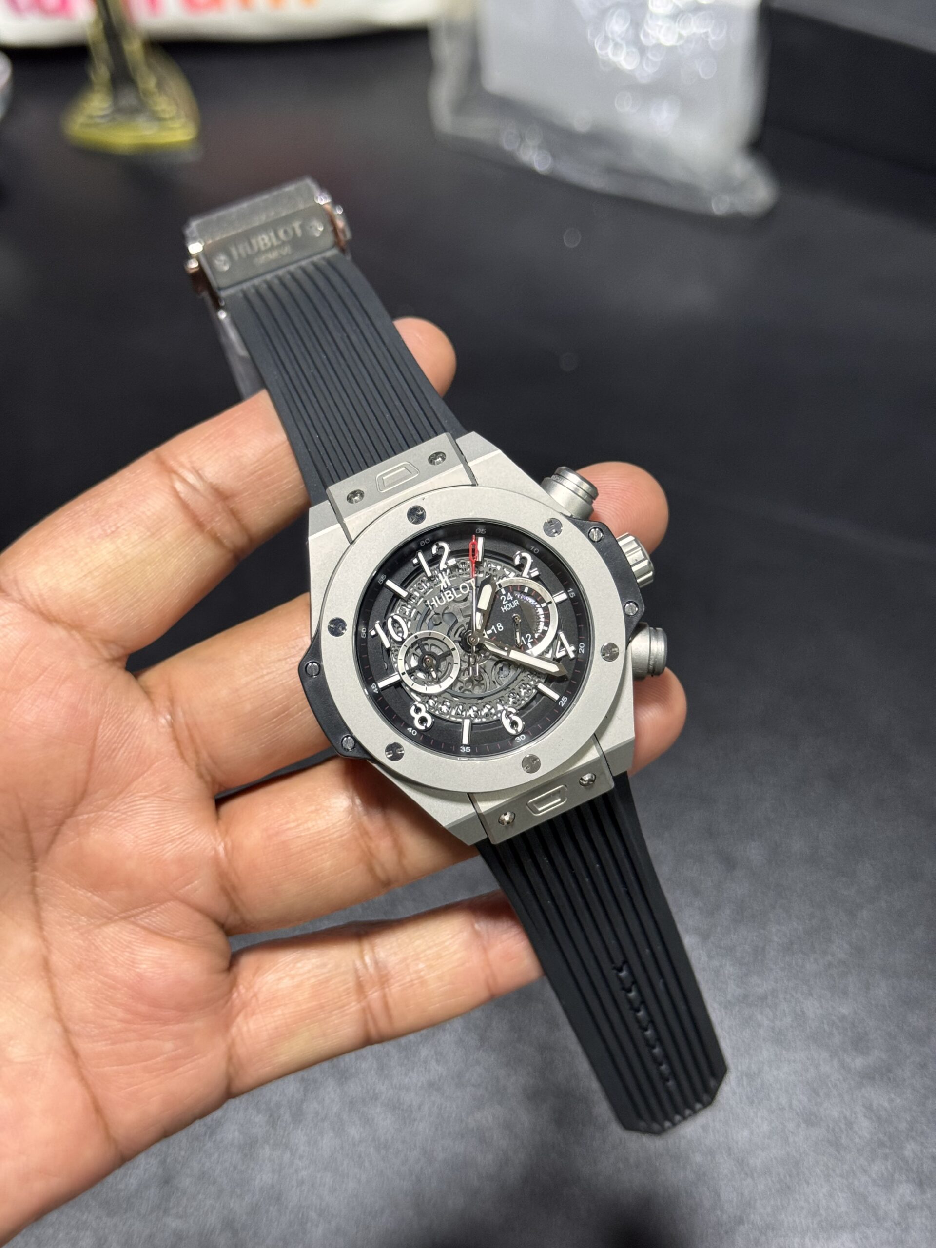 Be the first to review “Big-Bang – Silver Case – Black Skeleton Dial – Black Silicon Strap”