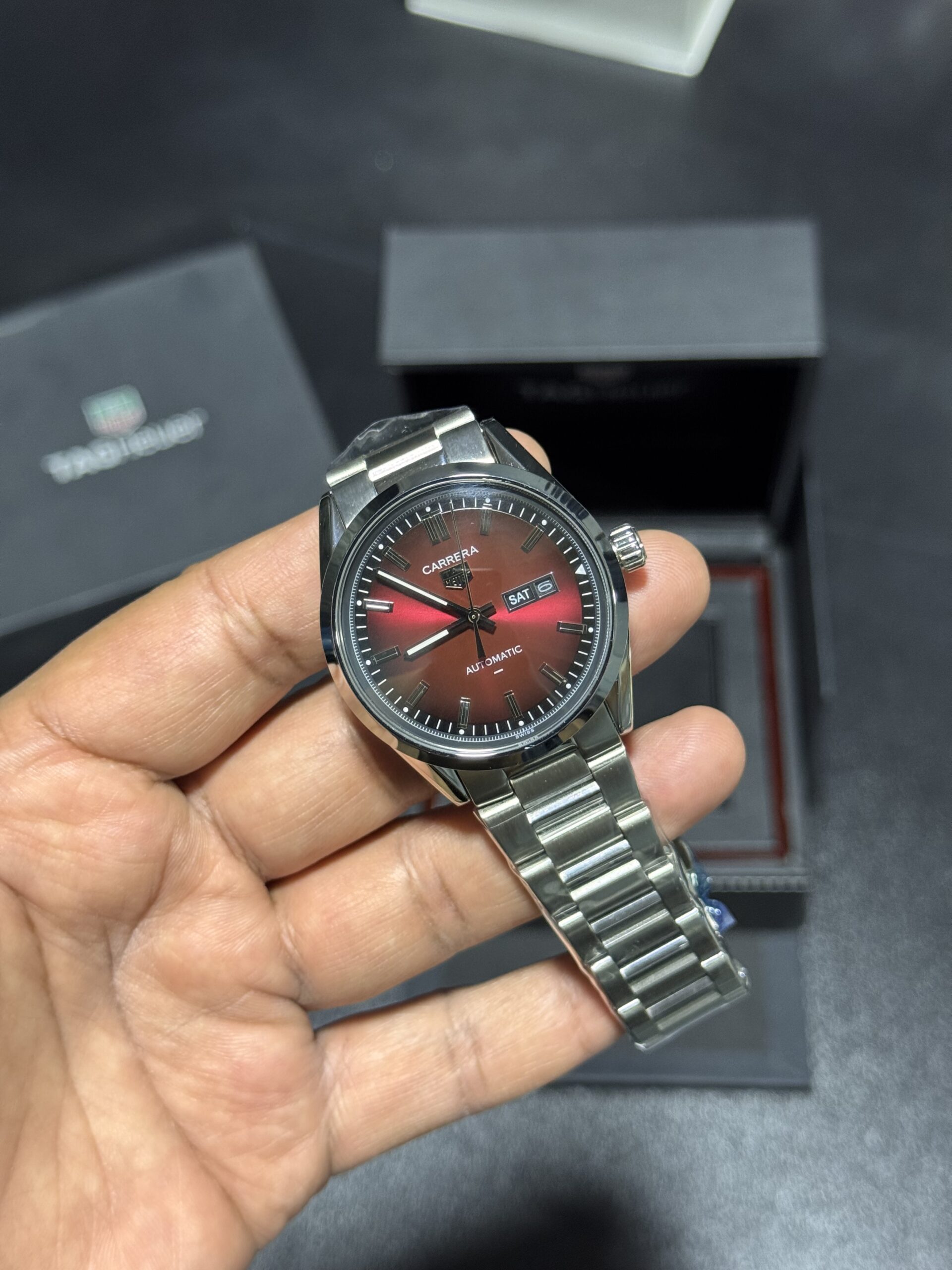 Be the first to review “Calibre 5 – Red Dial – Silver Bracelet”