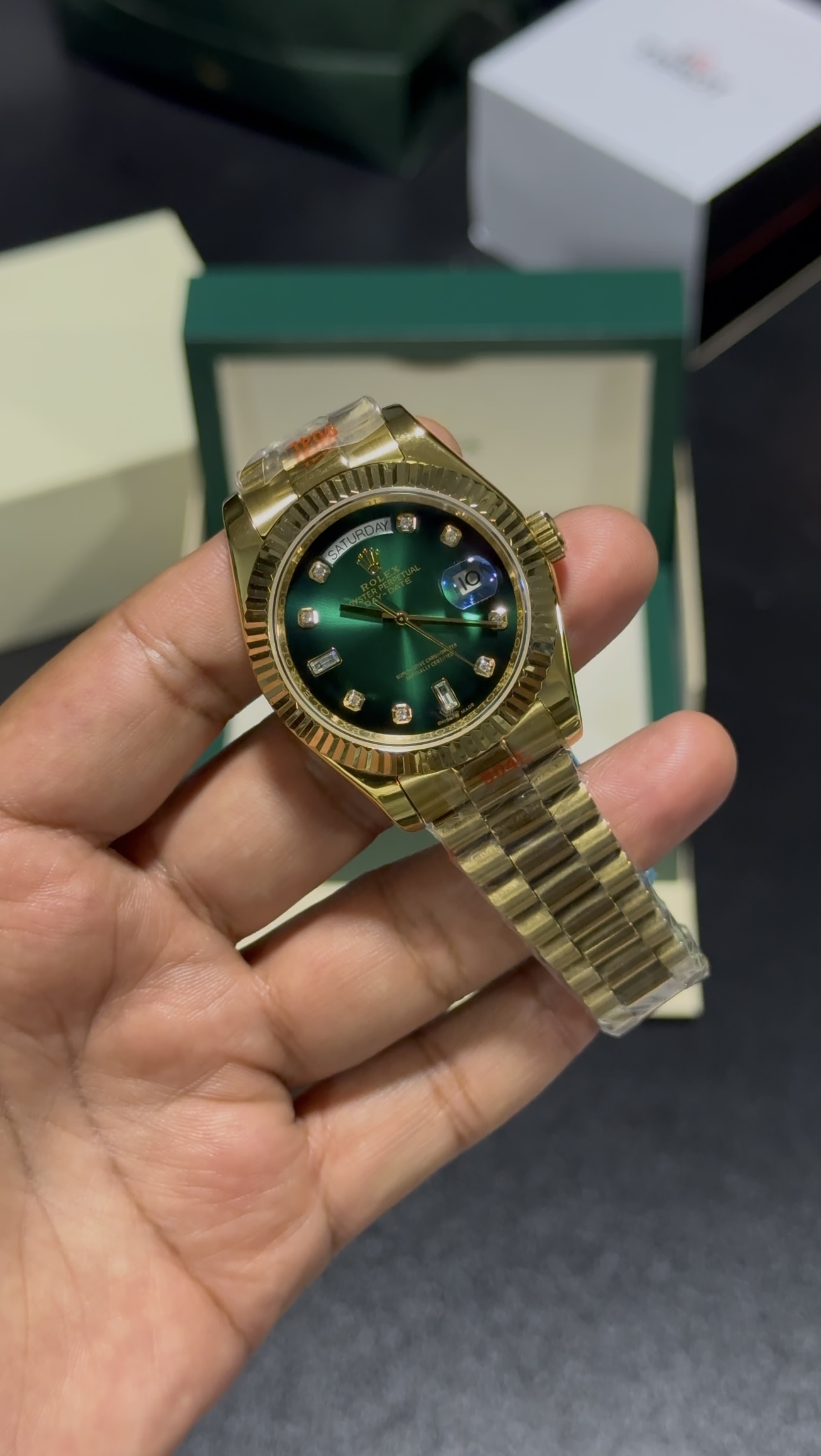 Be the first to review “DayDate – Smoked Green Diamond Dial – Gold President Bracelet”