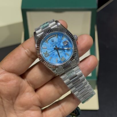 Be the first to review “DayDate – Turquoise Diamond Dial – Silver President Bracelet”
